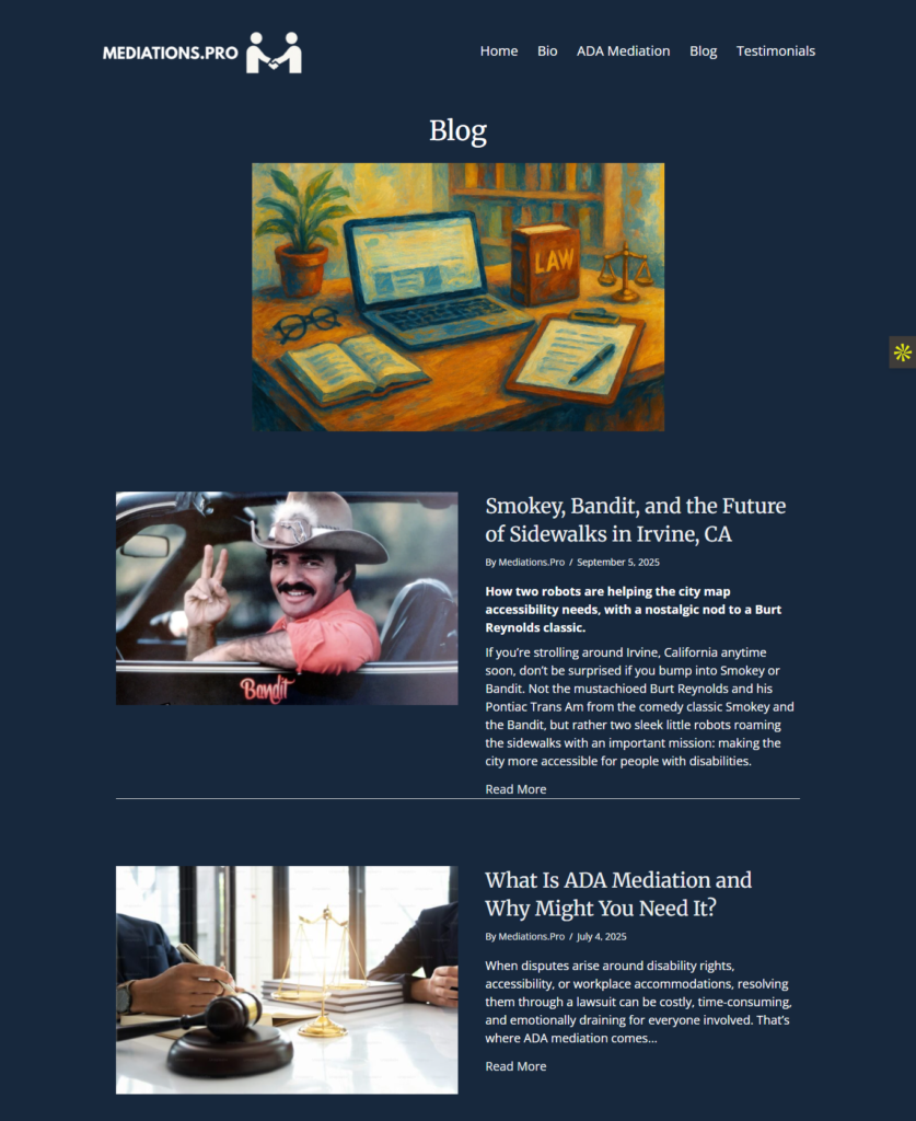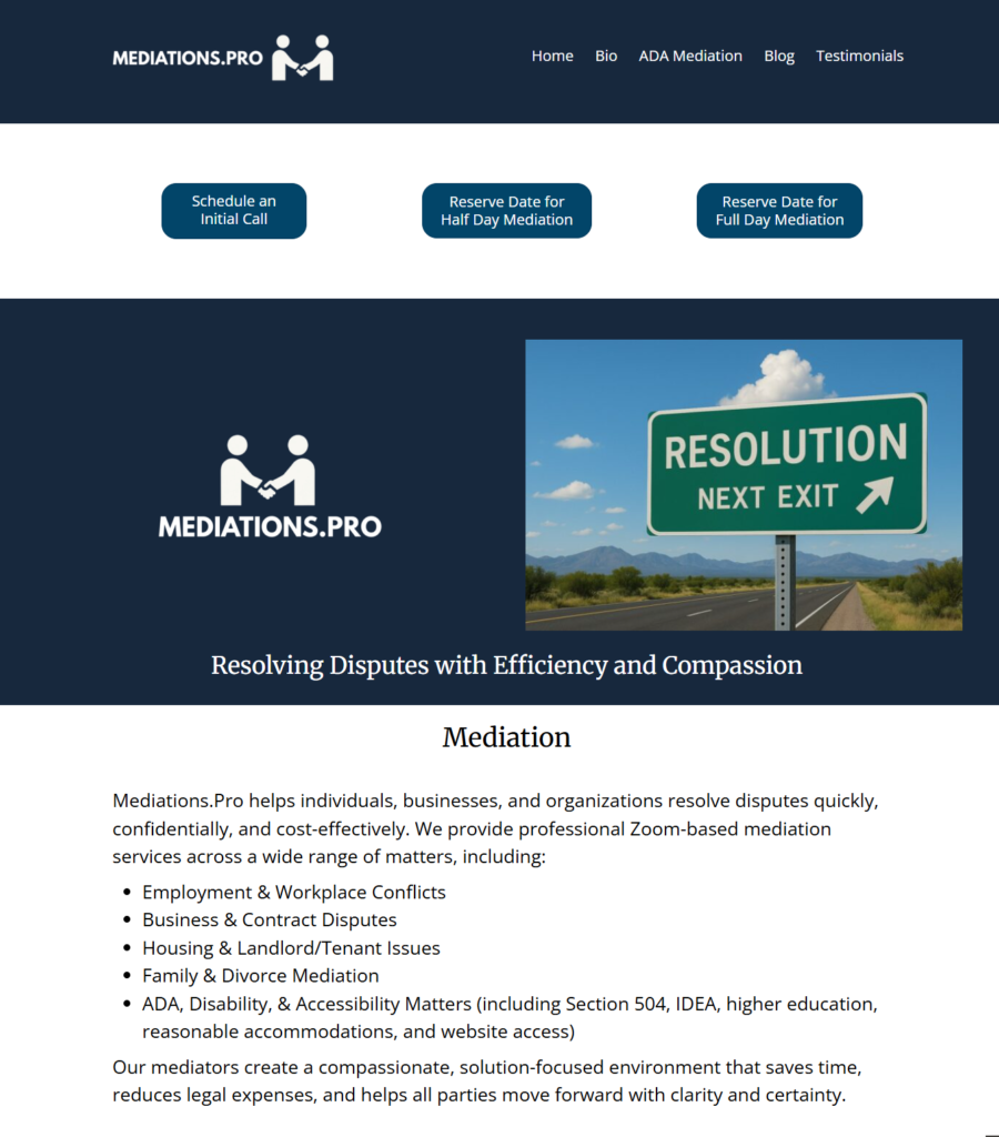 Achieved visibility for major search terms like mediator, ADA mediation, and disability dispute resolution.